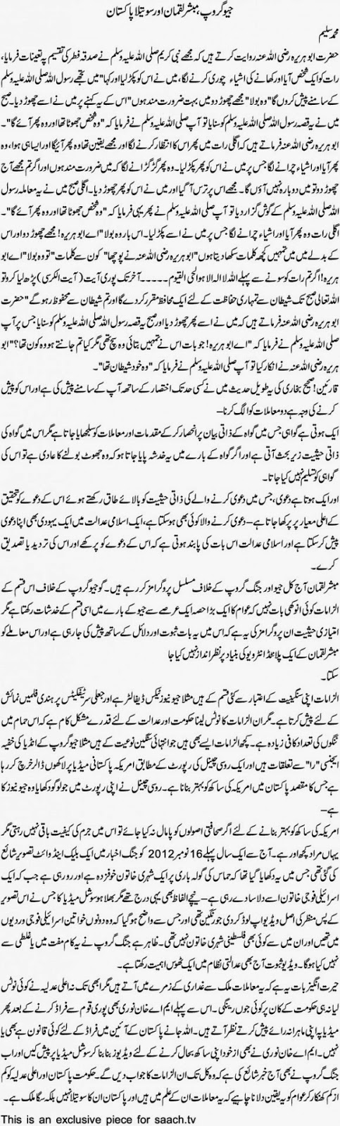 HomeColumns Geo Group , Mubashar Luqman Aur Sotila Pakistan - by Muhammad Saleem byUnknown •8:15 AM 0 Tags: Columns News Facebook Twitter